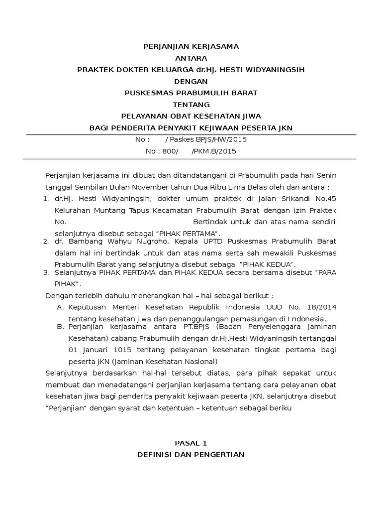 Contoh surat permohonan kerjasama klinik dengan bpjs kesehatan. Saya membaginya hanya untuk sebagai pedoman saja, tidak serta merta anda copy paste semuanya karena aturan kerjasama di perusahaan anda mungkin. 6th maret 2021 11 min read. Ketika dua orang atau 2 instansi melakukan kesepakatan, biasanya akan diperlukan sebuah perjanjian atau jaminan untuk kepastian. 18 contoh surat perjanjian sewa kerja jual beli hutang.